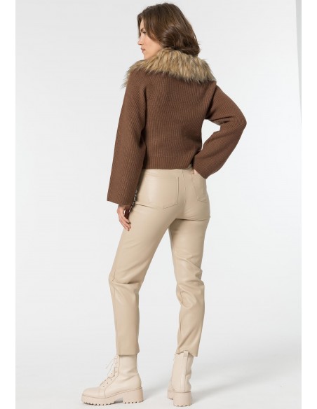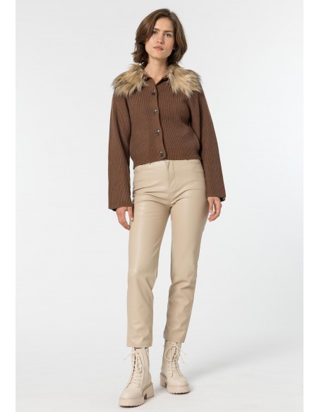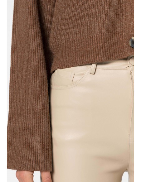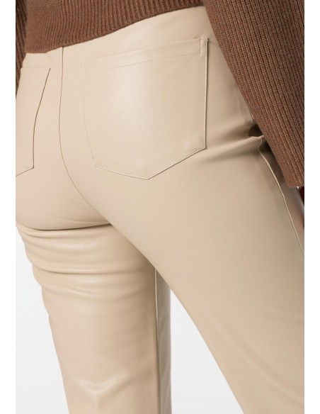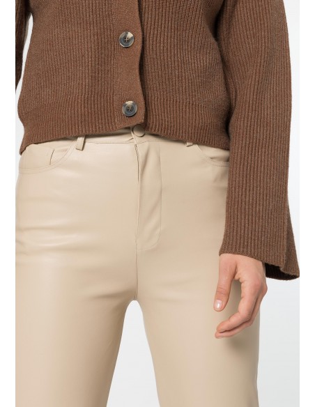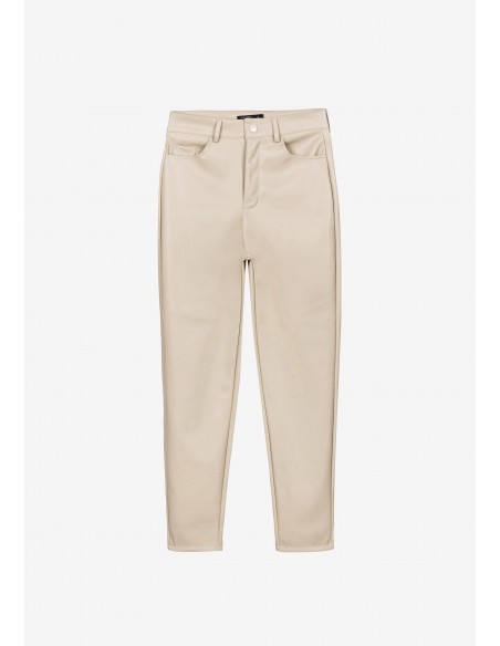 PANTALÓN MOM EFECTO PIEL BEIGE