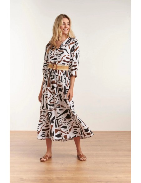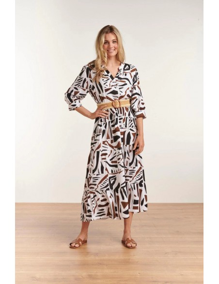 VESTIDO MIDI ABSTRACTO BLANCO Y NEGRO