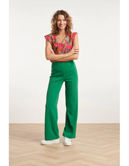 El atrevido diseño con estampado tropical añade un elemento único, haciendo de este top un verdadero atractivo para cualquier ocasión.
