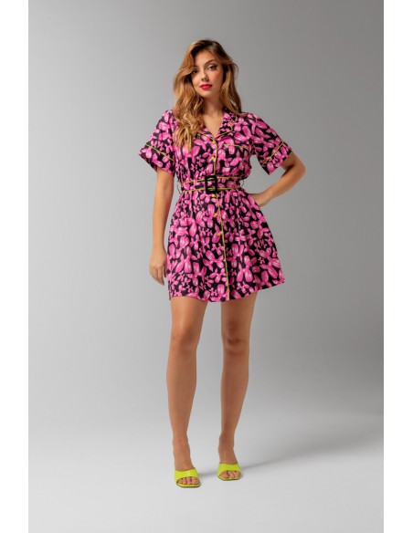 Cierre frontal con botones. Cinturón ajustable en el mismo tejido.