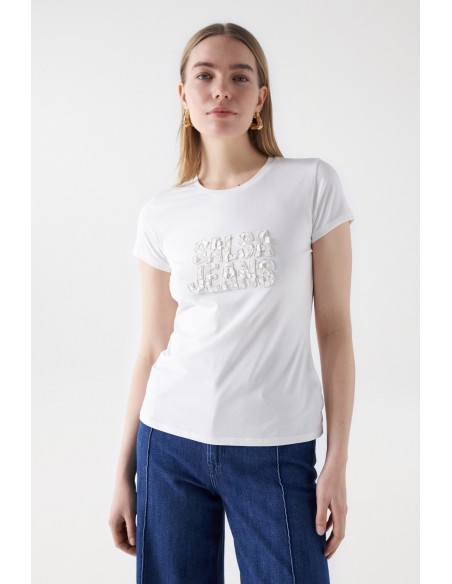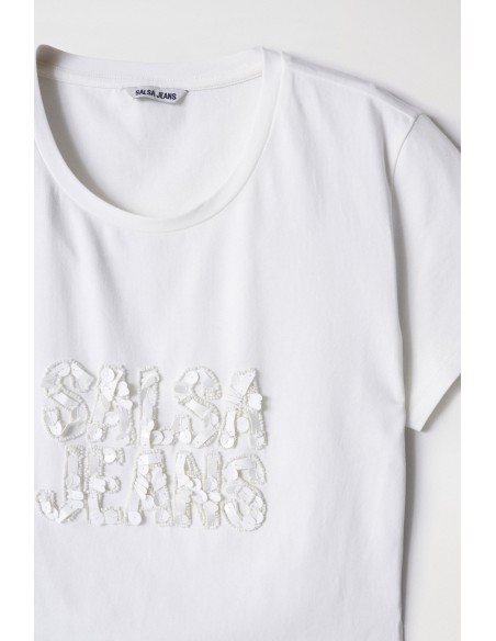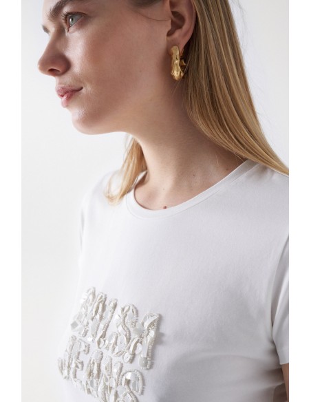 CAMISETA BLANCA MANGA CORTA LENTEJUELAS
