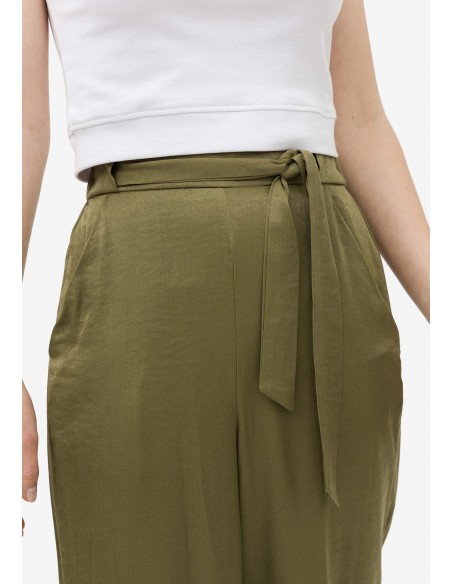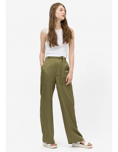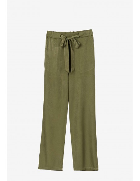 Cinturón en el mismo tejido. Elástico en la cintura a la espalda.