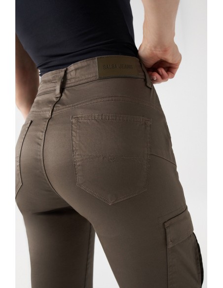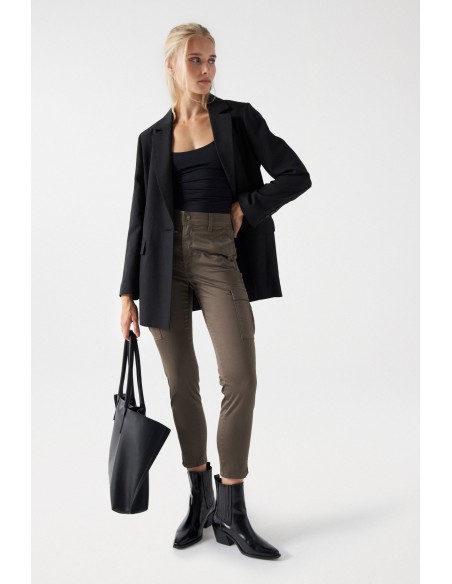 Pierna cropped skinny. Cintura alta. Cierre con un botón y cremallera.