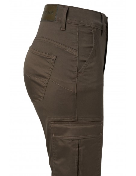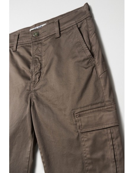 - Un botón, dos bolsillos traseros de líneas rectas y una pinza lateral.