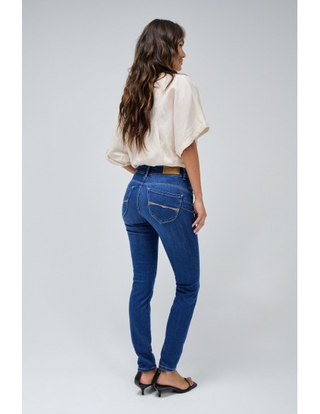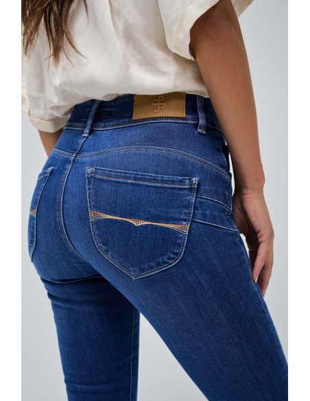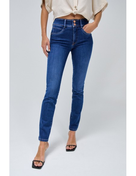 Te encantará su fit Push In, cintura alta, sus cinco clásicos bolsillos y dos botones delanteros.
