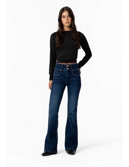 Su pierna acampanada no solo realza tu figura, sino que también te da un aire relajado y moderno.