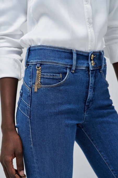 Los Vaqueros Secret Push In, de cintura media y dos botones, incorporan un panel interno, especialmente diseñado para moldear tu cintura con el máximo confort.