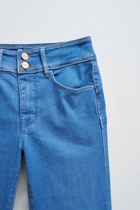 Te encantarán con su cintura alta, sus cinco clásicos bolsillos y dos botones delanteros. ¡Los vaqueros que te sientan perfectos que tanto buscabas!