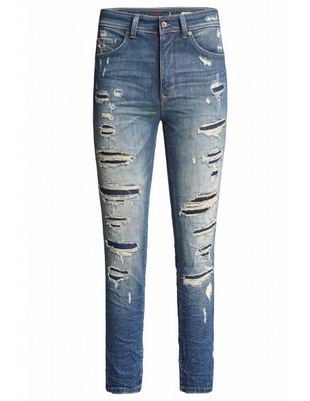 Déjate seducir por nuestros vaqueros secret glamour. Pormenorizados con varios rotos, de gran tendencia, te confieren un look más atrevido, más confortable debido a su cintura alta y corte capri.