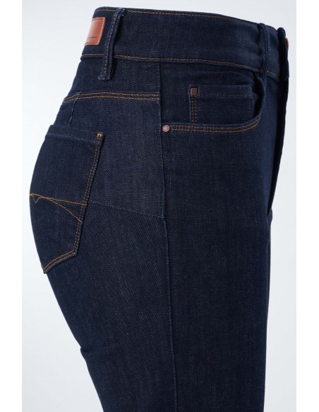 El efecto push-up realza las curvas femeninas gracias al diseño recto de los bolsillos, a las costuras y a las tres pinzas traseras, que crean una copa moldeadora.