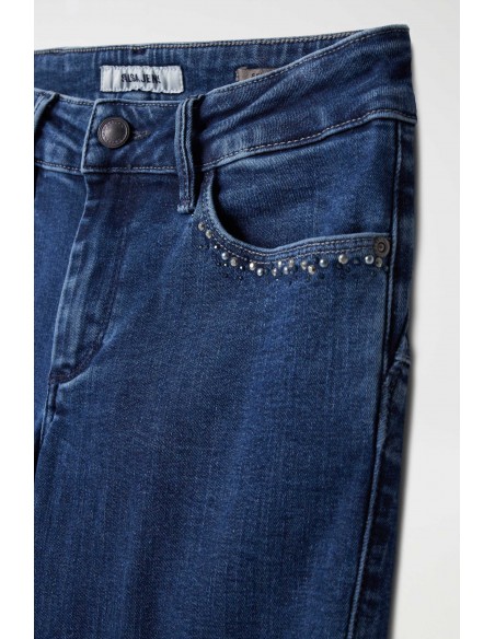 Detalle de pedrería en bolsillos delanteros.