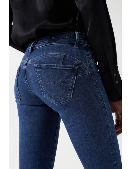 JEANS PUSH UP WONDER SKINNY AZUL PEDRERIA