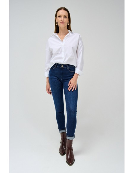 El efecto push-up realza las curvas femeninas gracias al diseño recto de los bolsillos, a las costuras y a las tres pinzas traseras, que crean una copa moldeadora.