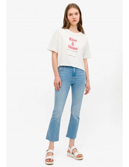 JEANS MEGAN CROPPED FLARE TIRO ALTO