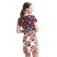 Vestido de manga corta con estampado combinado de lunares y flores.