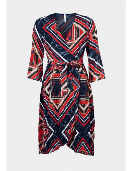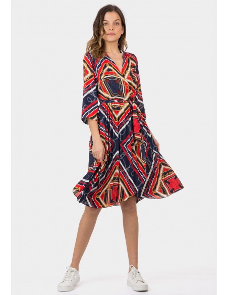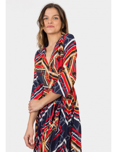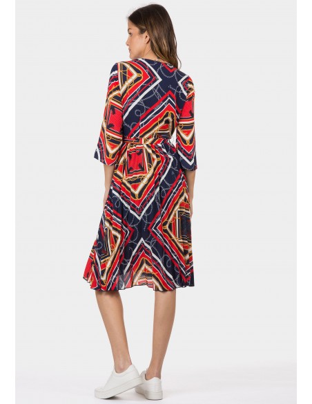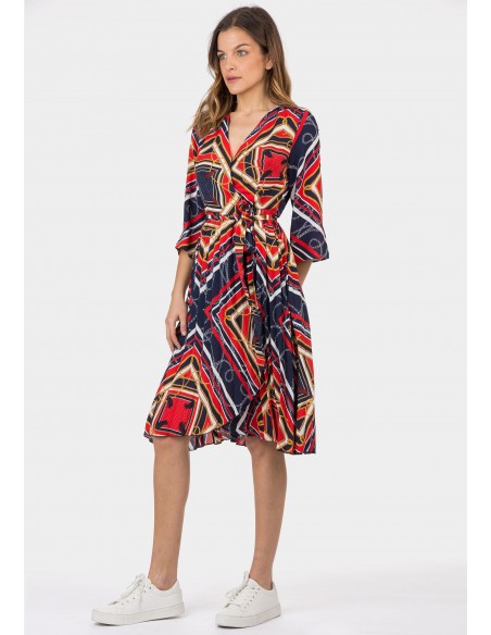 Vestido manga 3/4 con escote a pico estampado en print navy.