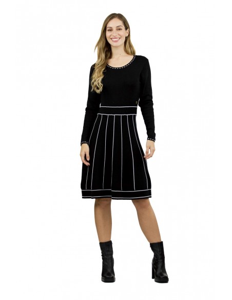 VESTIDO NEGRO RAYAS BLANCAS