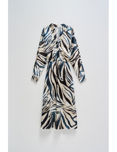 Este vestido midi satinado, de manga larga y corte regular, añade un toque único y sofisticado a cualquier look.