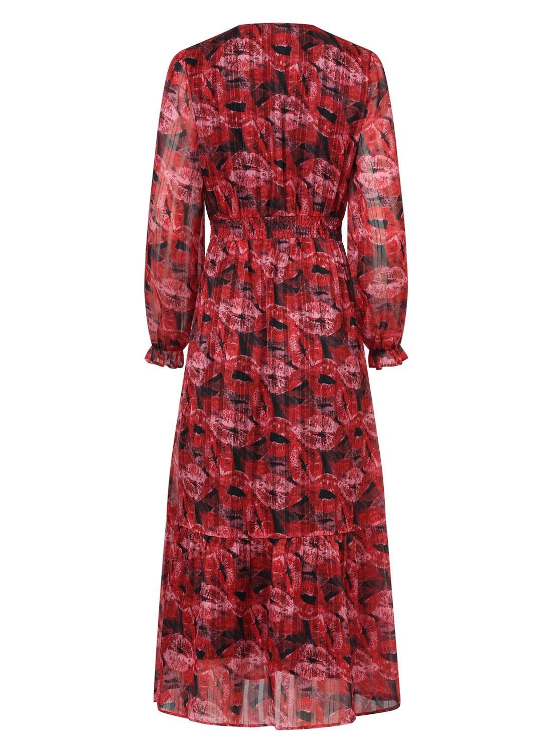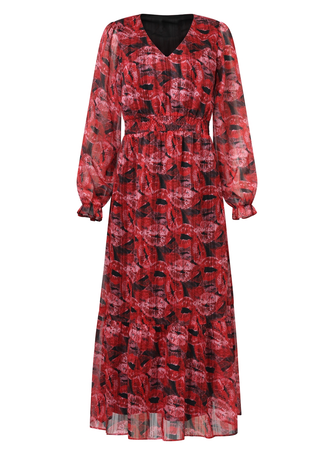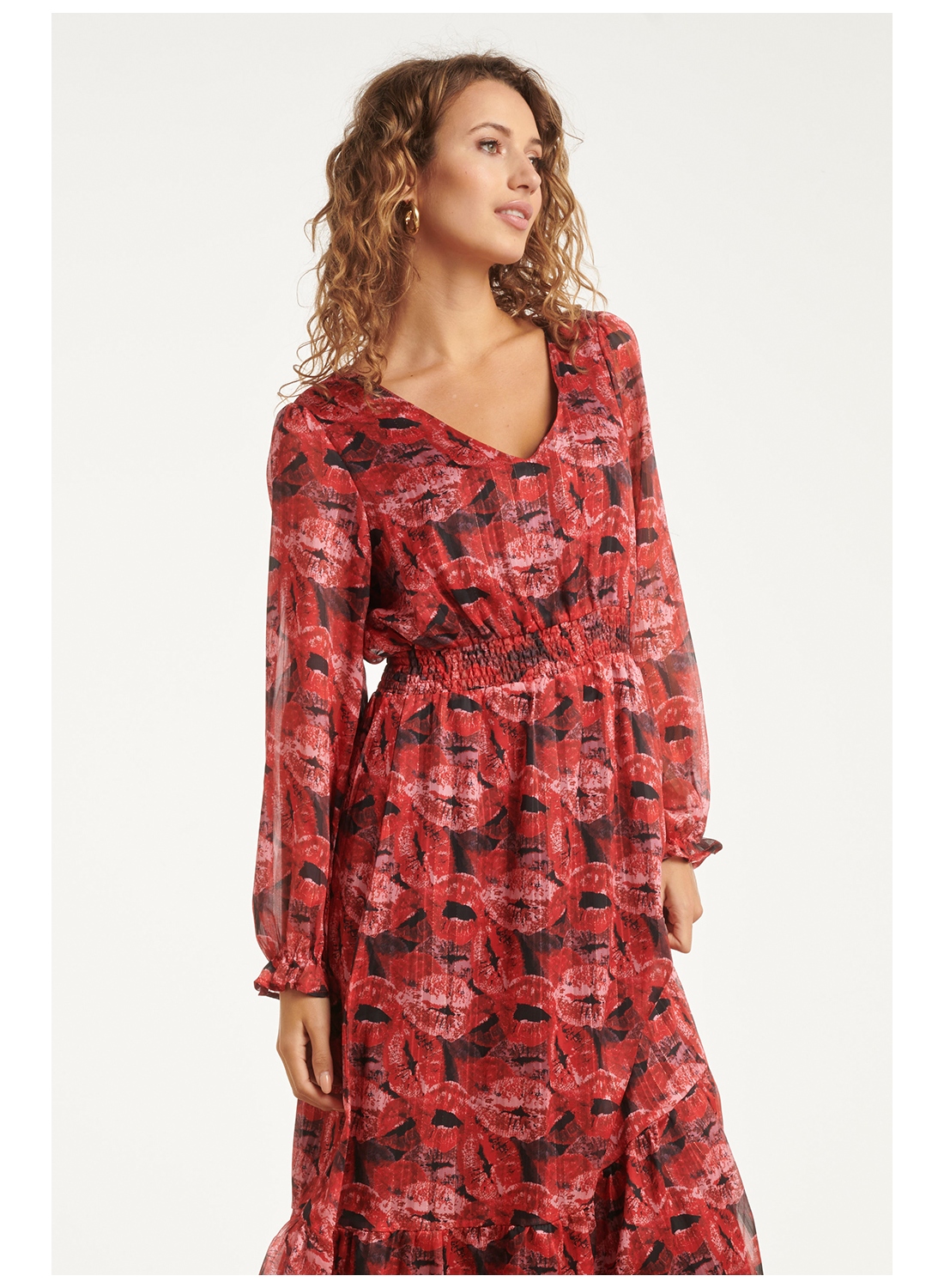 Descubre la elegancia y el estilo con nuestro vestido midi con estampado de labios, diseñado para resaltar tu personalidad única.