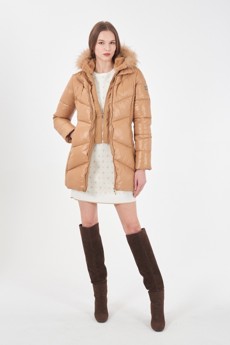 VESTIDO SUÉTER MOHAIR BEIGE DORADO